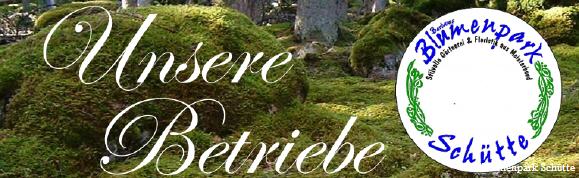 Unser Hauptgeschäft liegt in dem kleinen Ort Grabstede genau zwischen Wilhelmshaven und Oldenburg in der Nähe von Bockhorn. Dieses idyllisch gelegene Blumengeschäft entstand aus einem alten Bauernhaus das 1978-1979 stilecht renoviert worden ist. Da alles in einem kleinen Wohnzimmer im Wohnhaus anfing entstand der Name "Barbaras Bindestube". Dieser Name hielt sich über 20 Jahre, bis er im Jahre 2000 nach langen Überlegungen in "Barbaras Blumenpark Schütte" umbenannt worden ist, da sich der Betrieb im laufe der Jahre vergrößert hat. Seit 1999 ist das Blumenhaus um eine Gärtnerei erweitert worden. So können wir jetzt immer für frischen Blumen und Pflanzen garantieren! Die Gesamtgröße beläuft sich auf 8 Hektar (Freiland, Baumschulfläche, Zierpflanzengärtnerei, Blumenhaus). Wir arbeiten fast ausschließlich nur mit natürlichen Materialien. Also schauen Sie mal rein! Selbst die weiteste Anreise lohnt sich!